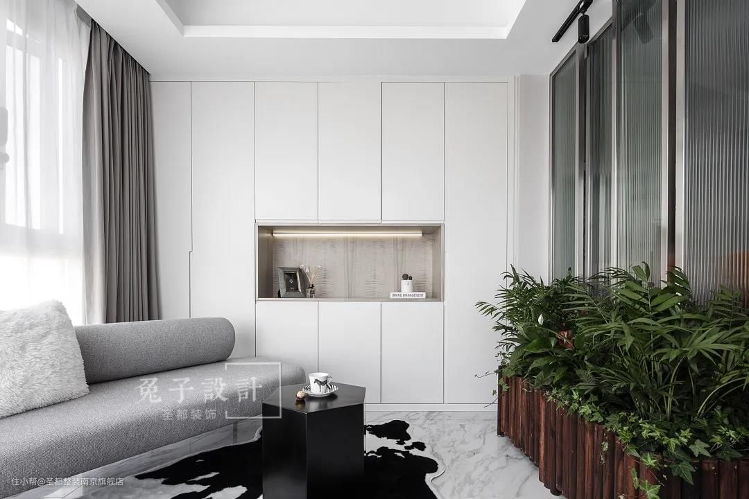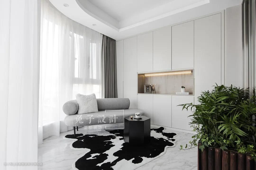 在这个案例里,看似鸡肋的弧形阳台,经过设计师改造,大胆与客厅连通,成就了一个绝美的室内休闲空间。