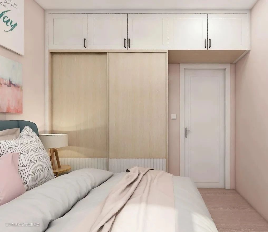 ▲卧室上方的横梁还可以做顶部的吊柜,延伸式设计充分开发顶部空间,让过季的厚重被褥、平日少用的杂物轻松收纳。