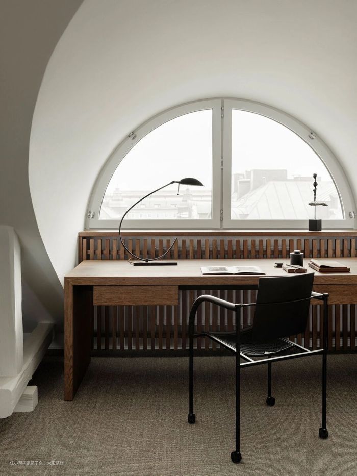 墙面结合书架的设计完美的呈现出空间的实用性,提升了空间的层级感,最大程度的利用了空间。