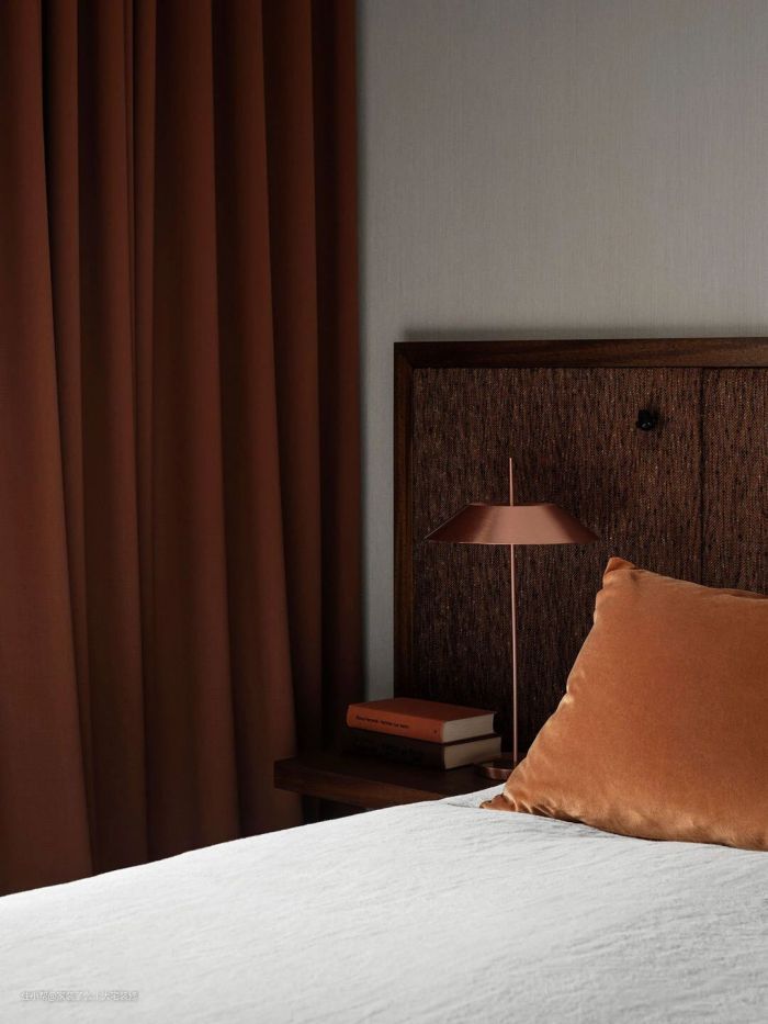 丝绒材质的床品细腻温柔,将人性化的神韵展现为空间的细节,将空间的宁静沉稳真情显露。