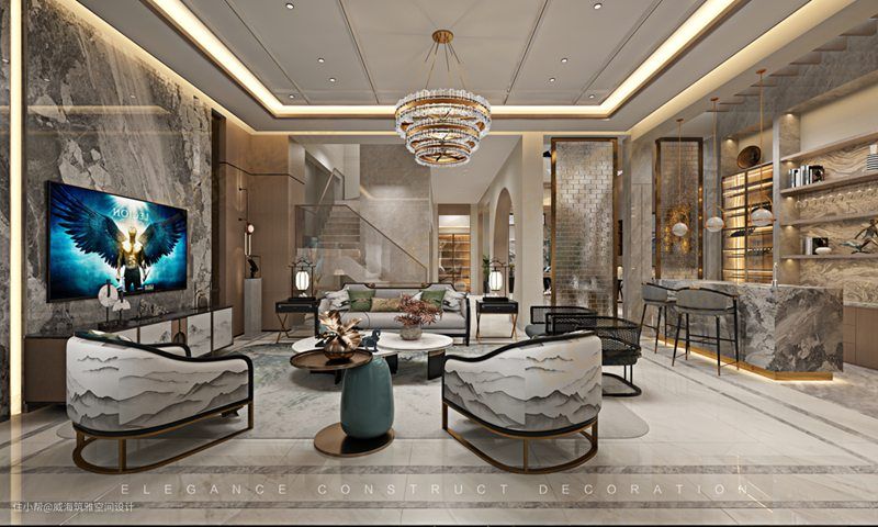 威海别墅装修天泽府500㎡有趣、自然、简单而具有文化意味