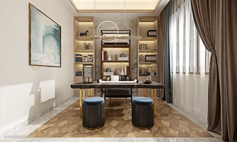 举目可望的景观,舒适自然的空间。书房融合现代与东方美学,觅清幽之处静享书香弥漫的休闲时光。