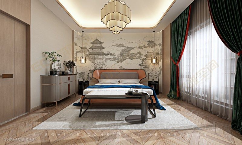 静雅诗韵的东方空间中,没有繁杂和冗余的造型余结构,直线感的空间创新出与众不同的清雅,在软装设计上遵循中式文化的精髓,给予中式艺术更多的表达。淡雅自然,内敛含蓄,在一张弛中品鉴国际东方美学底蕴。