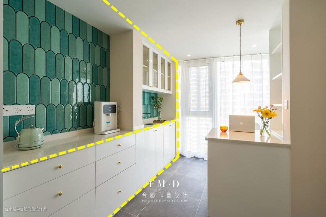 餐厅靠窗的户型,选择定制H型餐边柜,只会让厨房餐厅更顺手