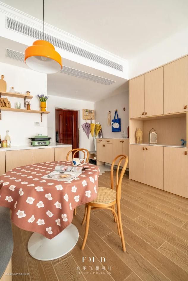 虽然是不起眼的小吧台,但暗藏2个小心机设计,让小吧台成为餐厅区装修的“大赢家”。①吧台台面虽然竖向不够宽,但放咖啡杯、水杯是绰绰有余的,悬空处理,一点不占地面空间,搬来高脚凳后,腿脚也有了活动空间了。