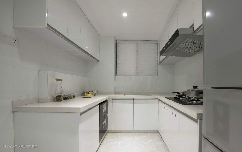 有的U型厨房具有L型厨房的狭长效果,这样的U型厨房布局特点就是利用狭长地带,在一定的基础上对U型厨房进行结构改良。