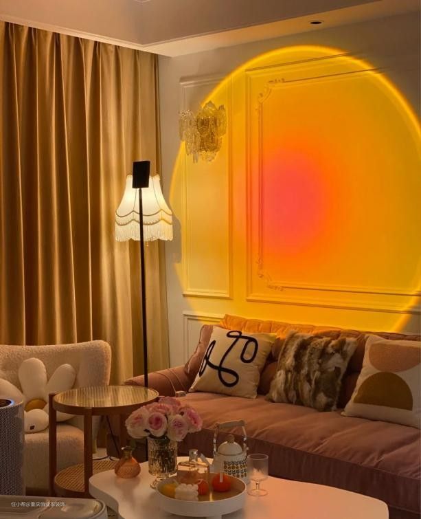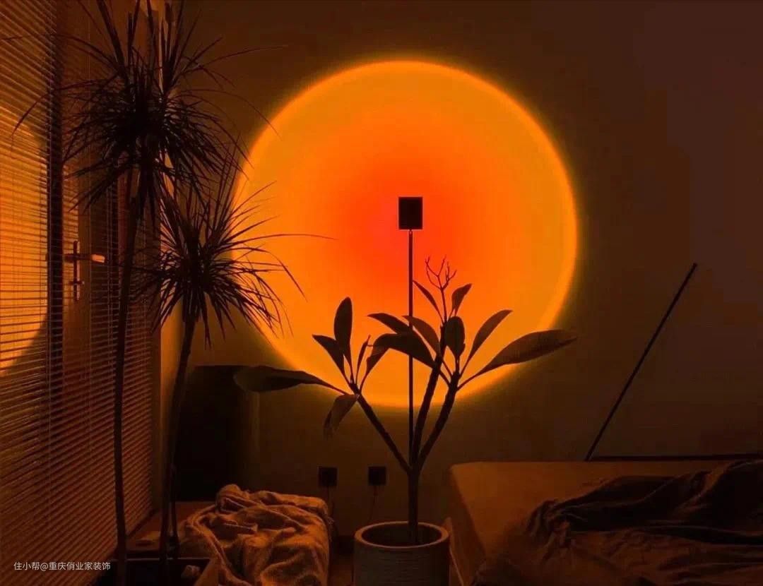 落日灯严格来说并不是传统意义上的灯具,它是通过独特的彩色投影技术利用双色向滤光器分离白色光源的频率,实现色彩渐变,再将其转化为光晕投射到墙上。