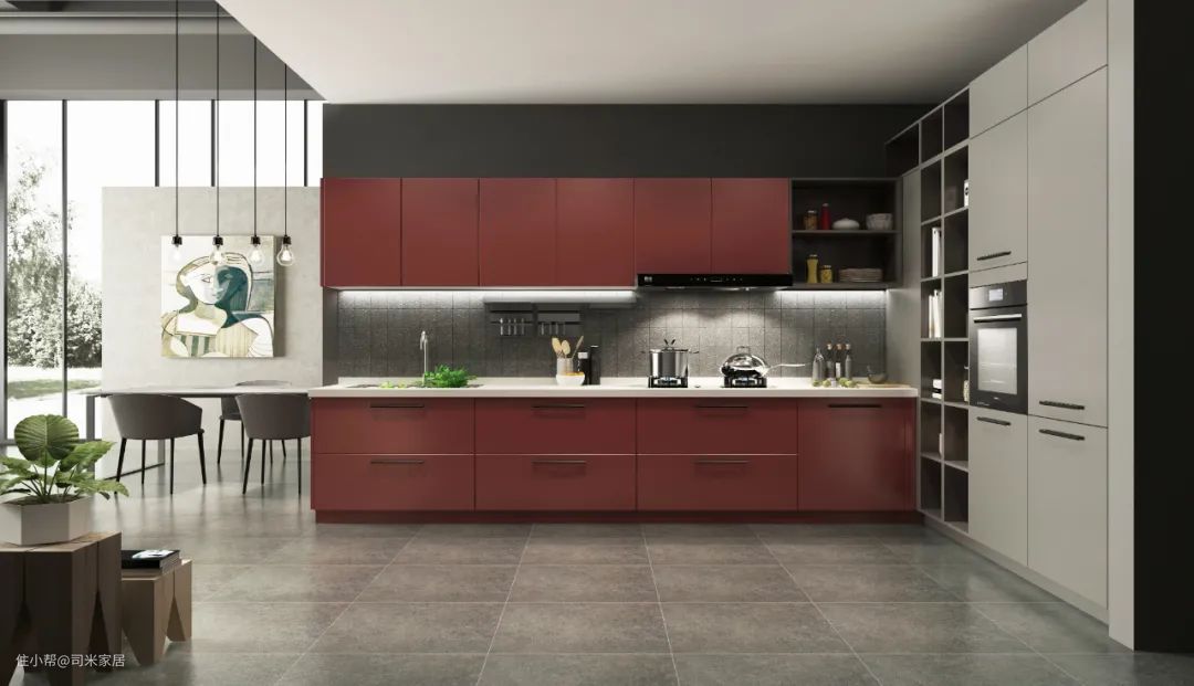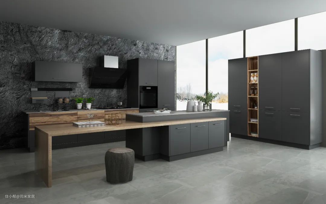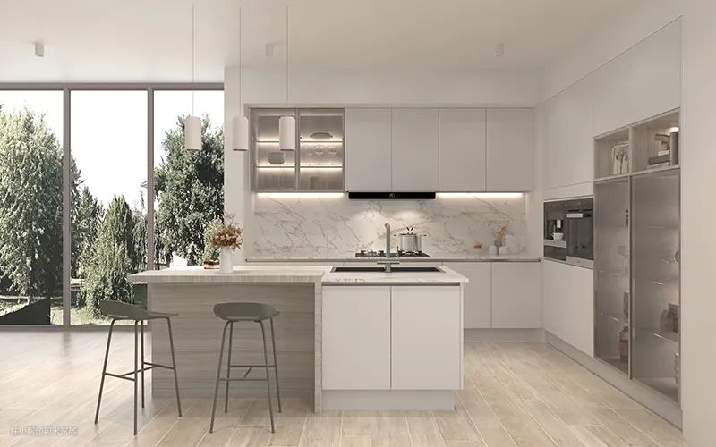 厨房的设计,体现了对生活品质的选择,反映了家庭的生活气息,更是享受生活的态度。现代感十足的设计、简洁明晰的线条,高级感十足的配色,给人以视觉、体验上完美享受。