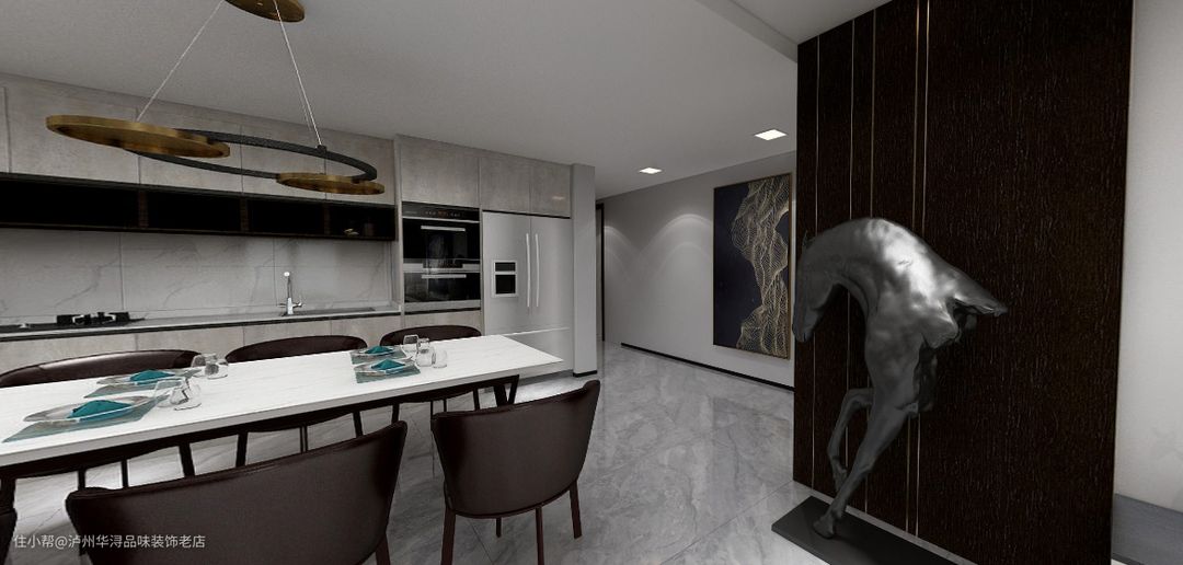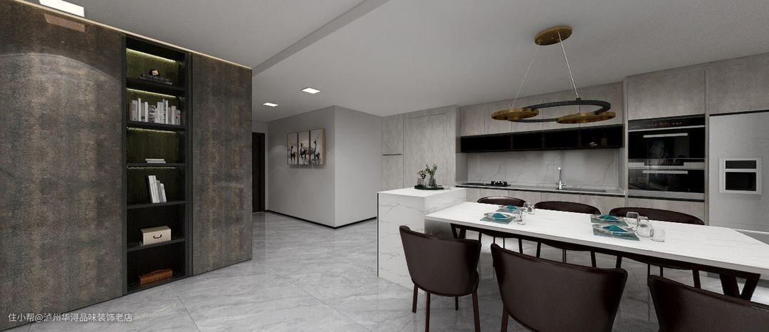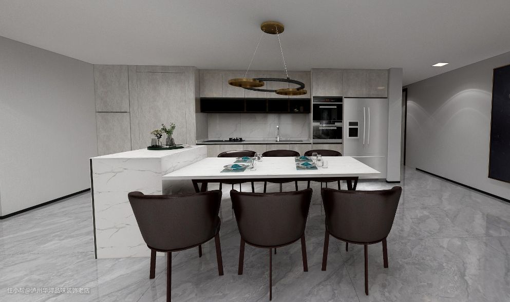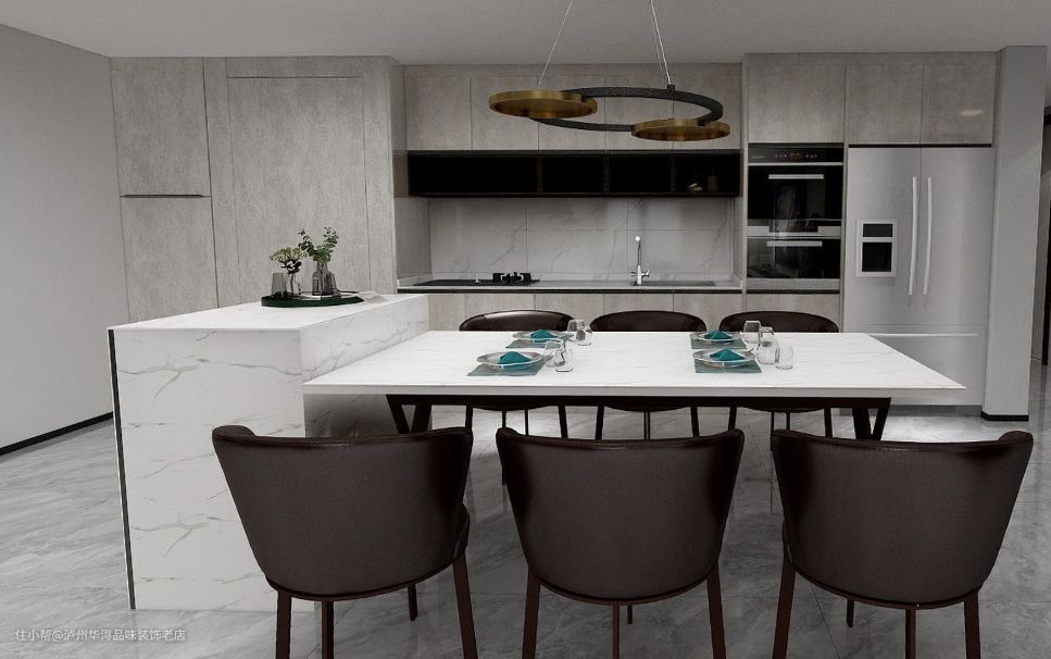 岩板的餐桌设计泸州华浔品味装饰老店2021-07-28这是一套大空间,岩板为主的设计,由其岩板的餐桌,配上岩板做得台面,具备平时的洗洗、切切的功能。岩板是时代流行的象征,也是流行的趋势,配合墙板的装饰,整个空间更有档次。