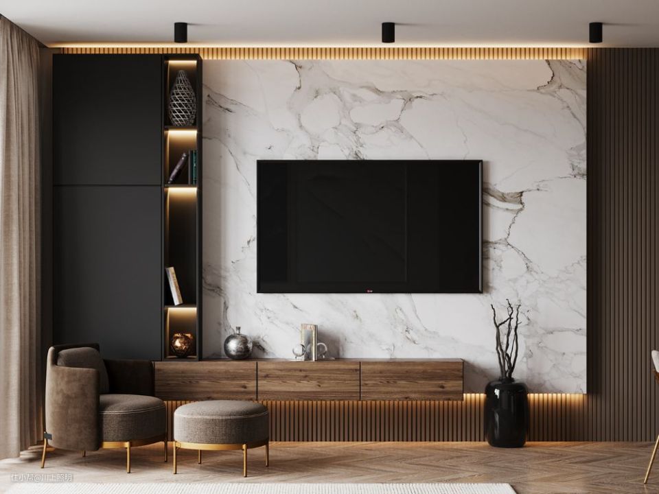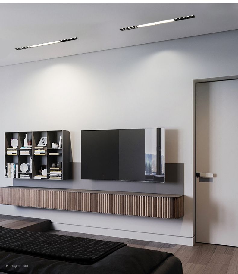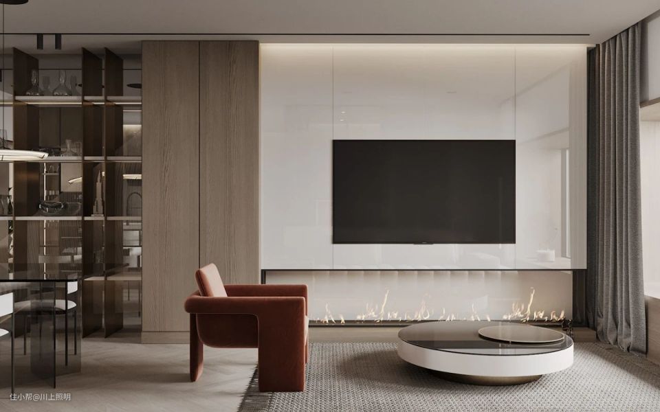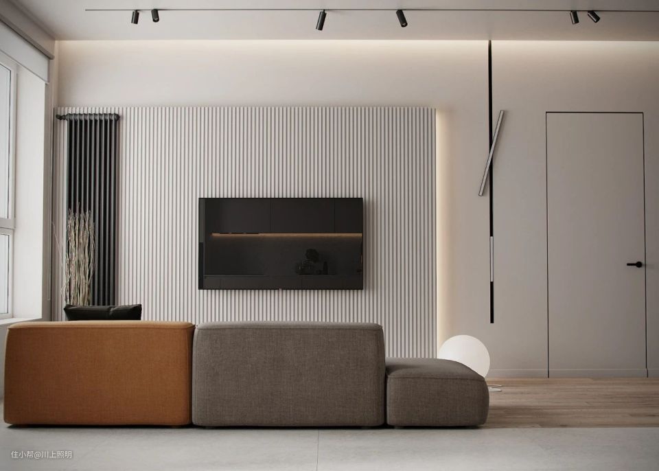 一般电视墙灯光会使用灯带,光线柔和均匀投射壁面,提供均匀的间接照明。