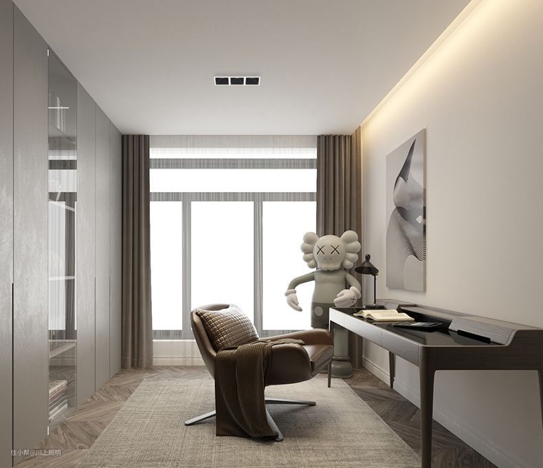 面:以广角灯具或泛光灯具均匀投射壁面,提供均匀的间接照明。这部分用到的灯具主要是灯带,灯带出光均匀柔和,让灯光像水一样洗过墙面,洗出的墙面自然柔和。