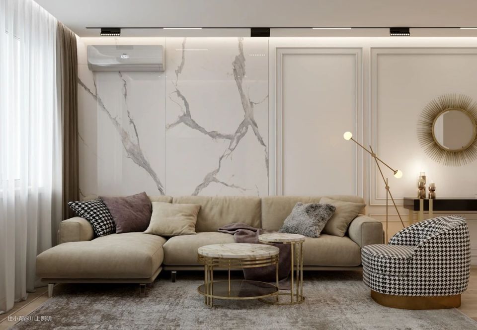 接下来我们着重讲一下电视墙的灯光设计要点,因为客厅最重要的一部分就是电视墙区域,电视墙的灯光也还是需要仔细斟酌考虑的。