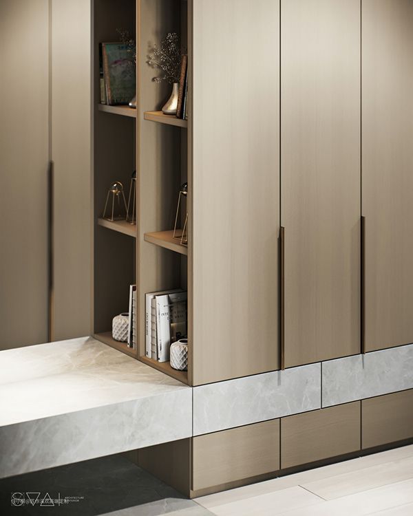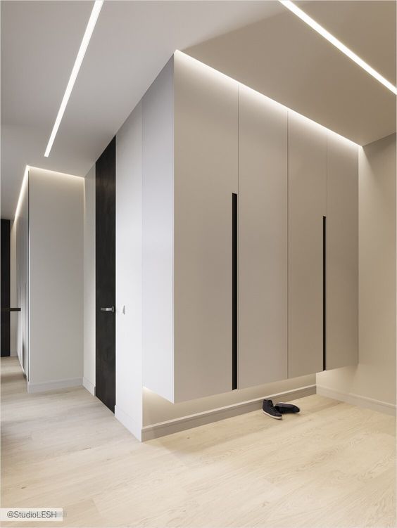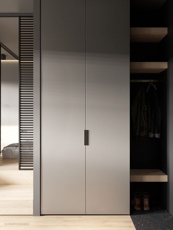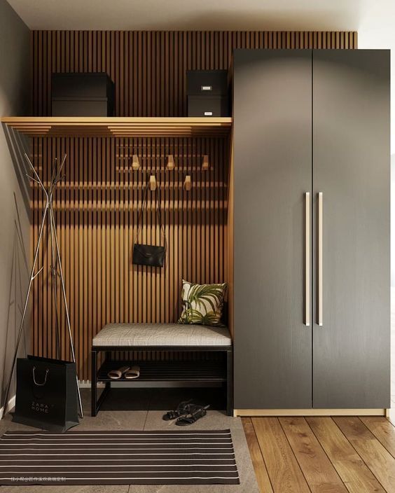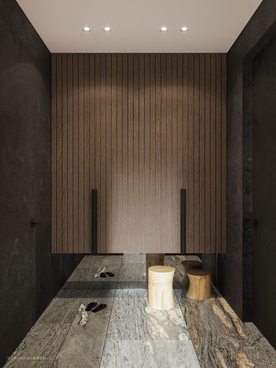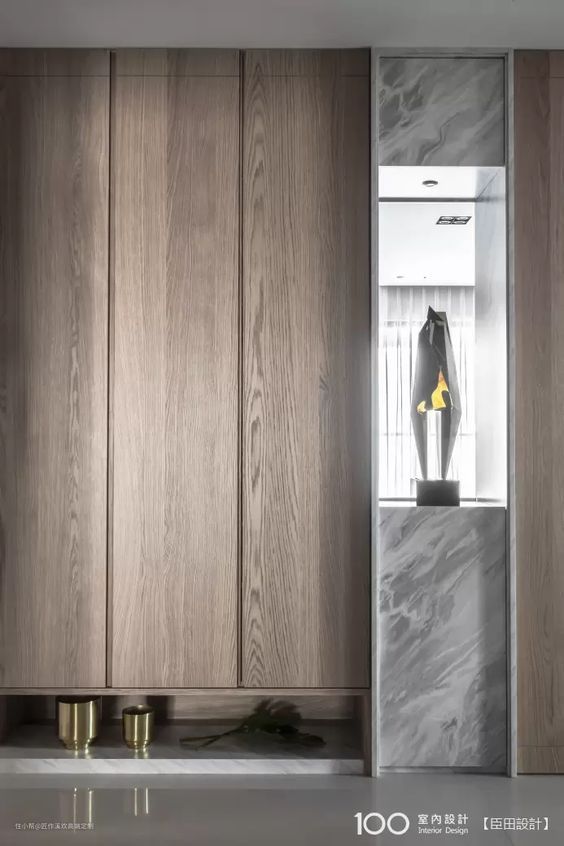 穿了一整天的鞋子难免残留一些气味,因此,鞋柜最好不要采用封闭式设计,不妨将门片以百叶、网洞或格栅造型来设计,既可透气、也可增加造型感,层板则应选用光滑面及耐擦洗板材,被鞋底脏污污染后较容易清理。最后也可在柜内或柜下方增加感应灯光,开门后可自动亮灯,更方便找鞋。