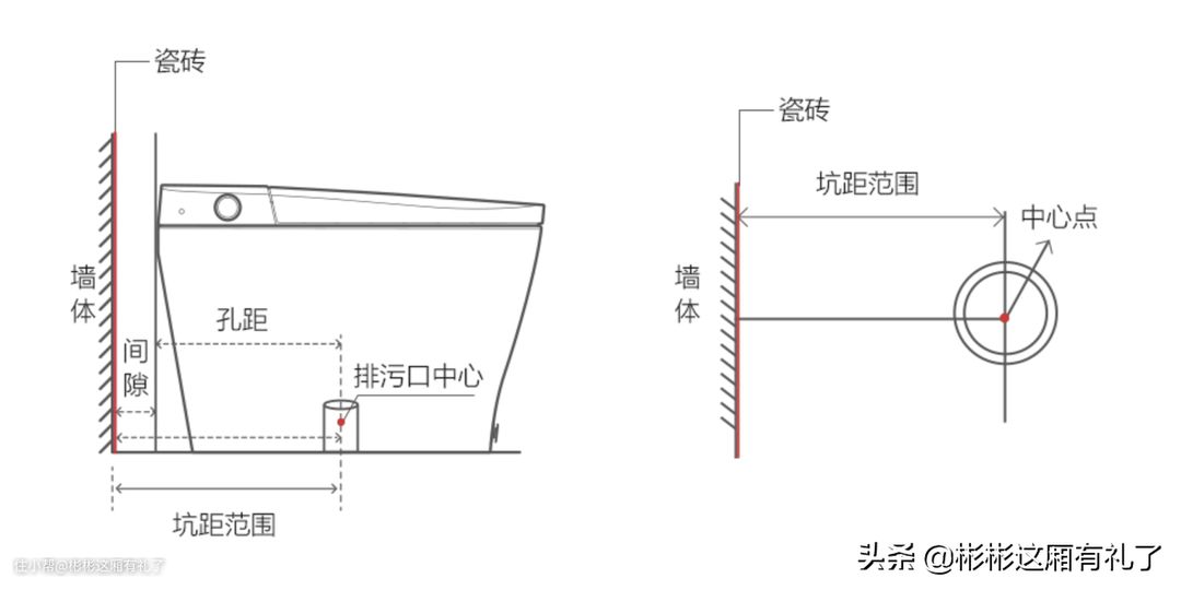 ▲什么是孔径?就是马桶下水孔的圆心到墙壁的距离。一般马桶的孔径分为30或40公分。这个长度是选购马桶的关键,怎么才能得到这个数据呢?其实,单单从马桶外面是量不出来的,可以大致推算,但是并不一定准确。只有拆开旧马桶,才能知道真实的孔径。如果确实无法确定孔径,个人觉得孔径宁愿选30也不要选40。因为选短一点马桶还可以往外面安装,只是离墙壁远一点而已,如果是40孔径,有些情况马桶会顶到墙壁,甚至不能安装。
