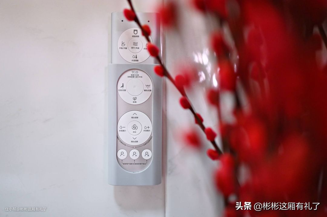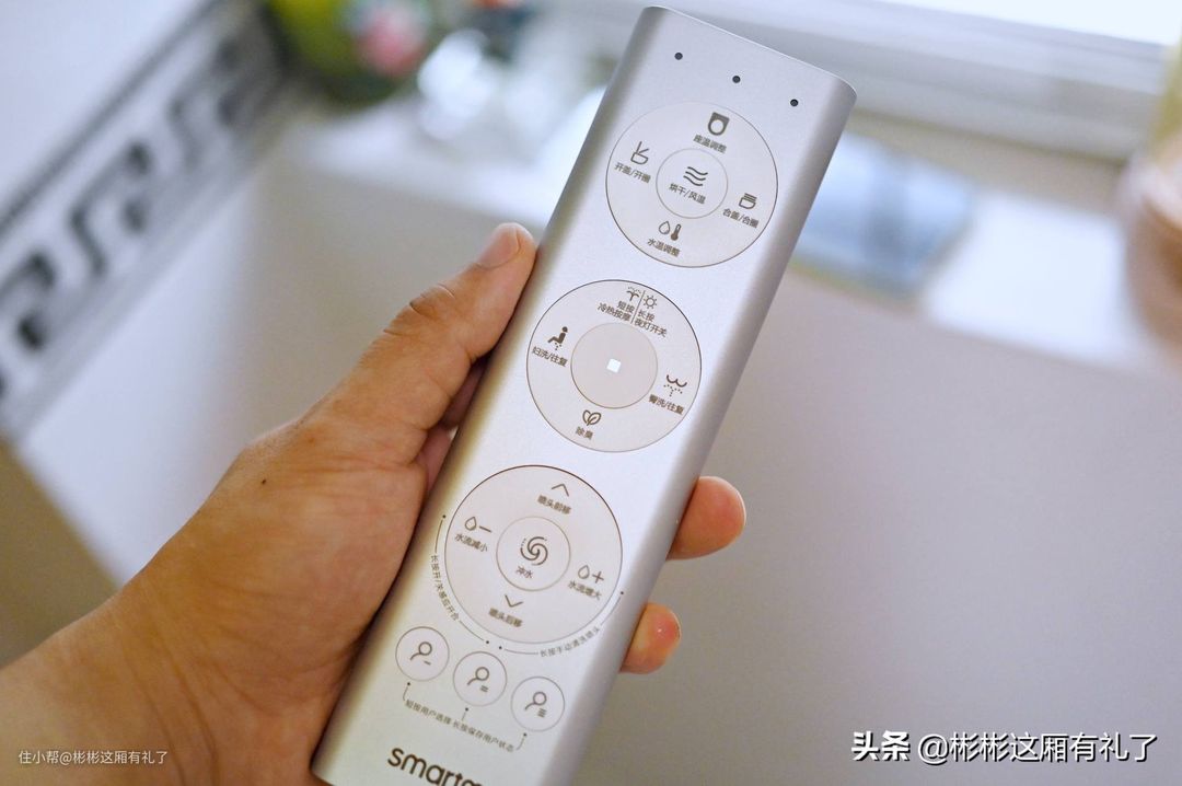 ▲来看看遥控器。这是我见过最大的智能马桶遥控器,看起来非常像电视遥控器。在做工和手感方面,甚至还要更好。整个遥控器的外壳是铝合金,曲线也圆润,握感不错。遥控器的电池不是常见的5号或7号电池,而是需要两颗CR2032纽扣电池。对于这点我不是很理解,毕竟5号或7号电池才更常见啊,没电了随时可以换上。 另外,还有一个备用喷嘴。