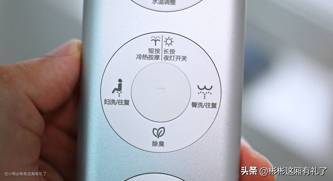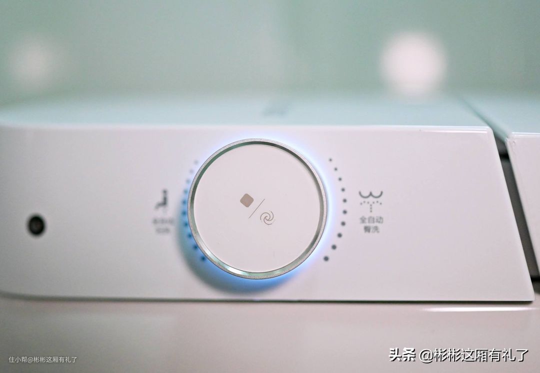 ▲笔者也是第一回在马桶上体验到操控逻辑这么好的一个旋钮,又可以按下,也可以无极旋转。短按就是冲水,长按就是关机。往前旋转就是冲洗臀部,往后旋转就是妇洗。而且,旋钮的手感非常紧实顺滑,自带的一圈淡蓝色灯光还起到小夜灯的作用。不得不感叹国货的做工,已经到达一个令人满意的层级了。
