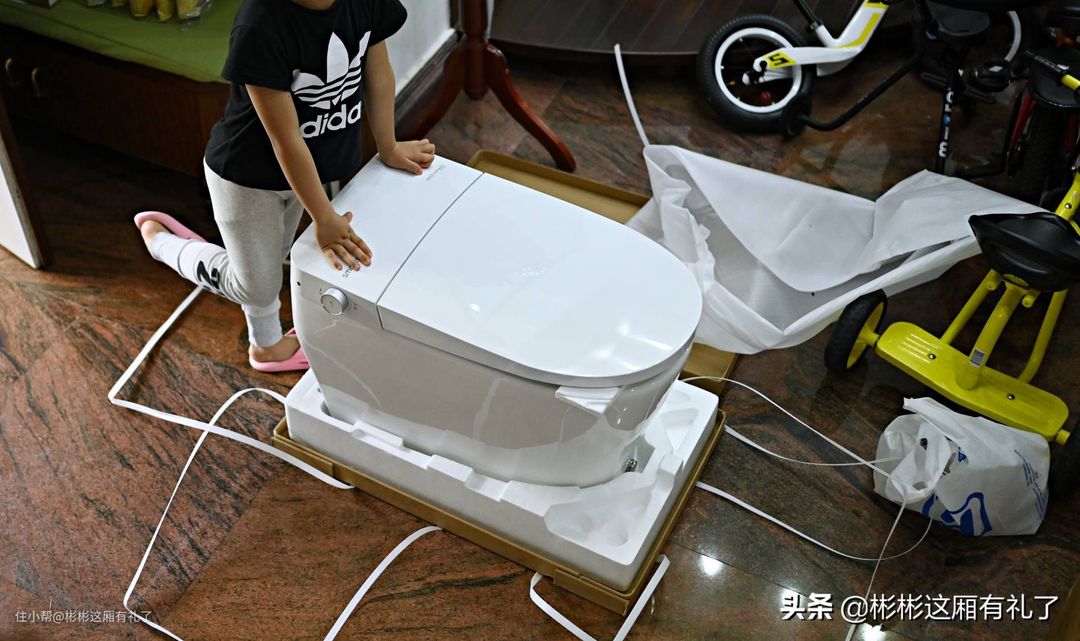 ▲在小米有品商城下单之后,没过两天就送上门了。和师傅约好安装时间,就等待安装了。之所以选中智米M1马桶,从消费者角度是看中了他们家5年整机质保的售后服务,毕竟智能马桶一体机也算是大件,售后还是重要的。当然安装免费,这点也能省下一些费用。开箱之后,可以看到马桶是相当的大,小闺女充满了好奇,甚至直接就坐上去了(第一次就是这样没的),PP小差点卡在坑里。
