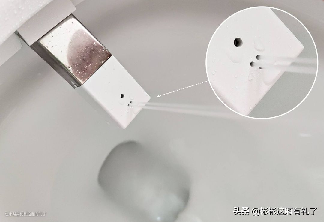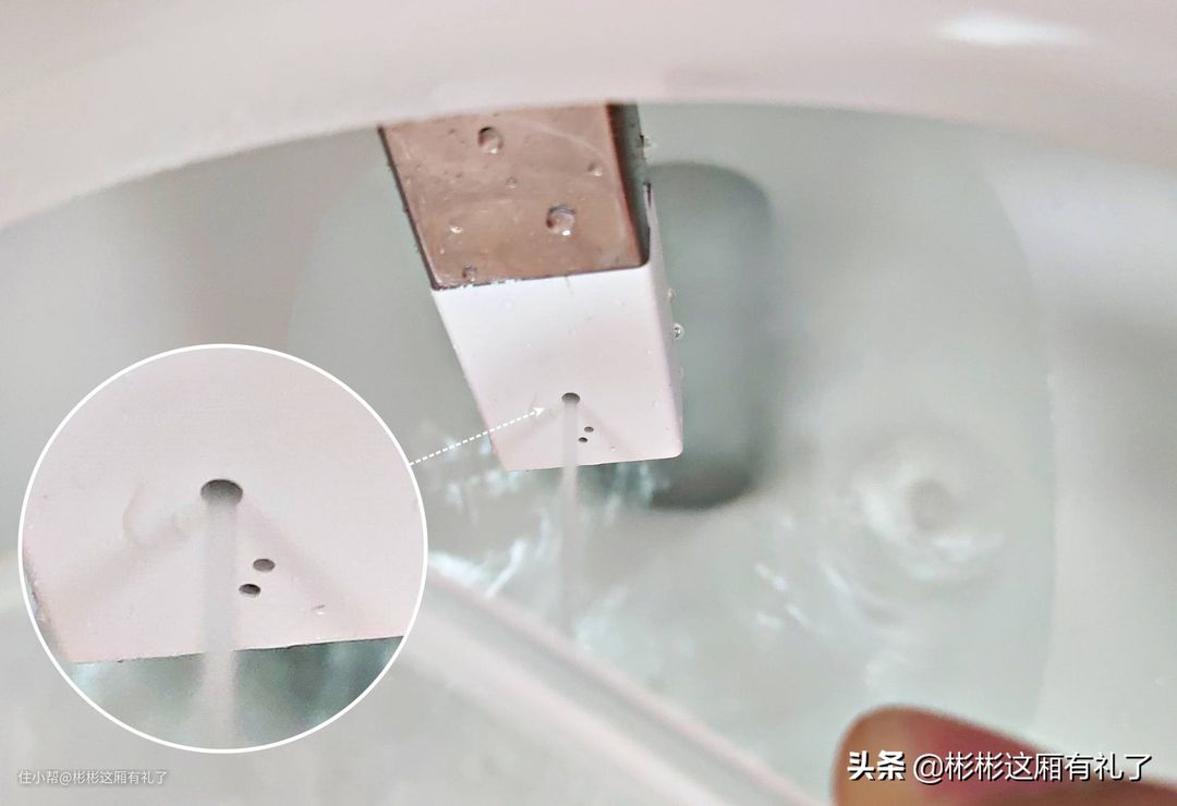 ▲好了,到了我最不了解的功能:妇洗...不过显然出口不太一样,妇洗水流是从三个小口中喷出,水流更加分散柔和,冲击力应该比臀洗要更轻柔一些,毕竟是敏感部位还是要呵护的。我家女性成员比较多,所以对妇洗功能的需求还挺大的,比如小闺女,孩子当然要保护好,这也是我入手智米马桶的重要出发点。
