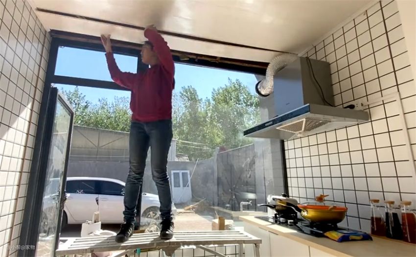 这下进度确实快了不少,从小院的地面铺设、管道搭建,建凉棚,再到室内各种家具制作,地板铺设、厨房装修等,统统自己搞定,动手能力极强。