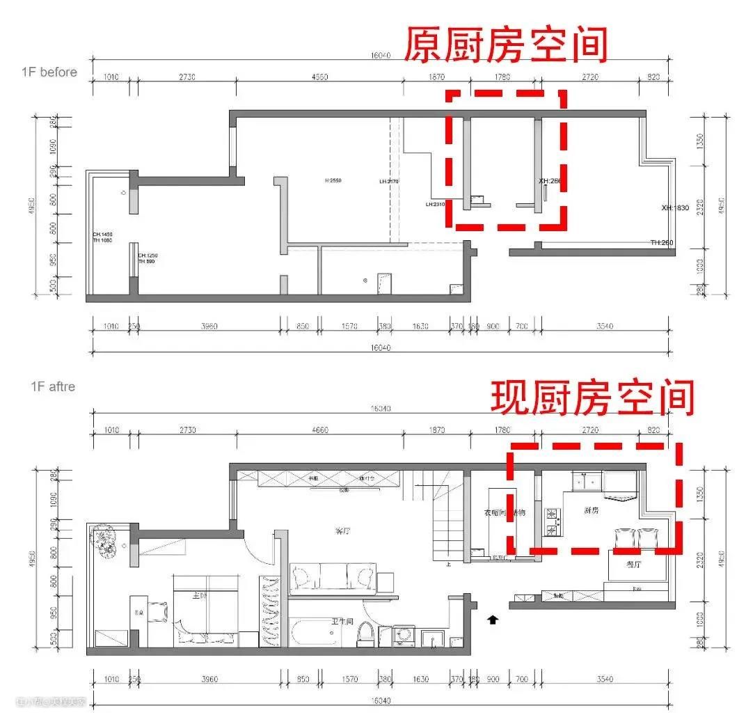 如果厨房相连的空间有墙体可以改动,可以考虑将其他空间并进厨房,解决暗厨变明厨的问题!不少户型厨房会和阳台、卫生间相邻。