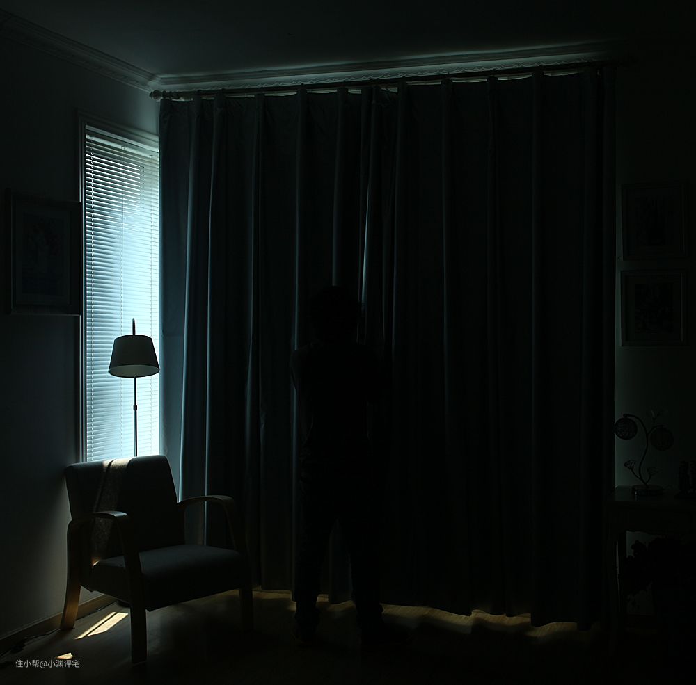 客厅书房等房间,使用窗帘的主要目的其实不是遮光,而是保护隐私。晚上房间里开灯,外面看里面会非常清晰。选择遮光率在60%以上的窗帘,就足以保证这种隐私。这种遮光率,在外面可以看出来房间里开灯了,却看不到房间里的人影。