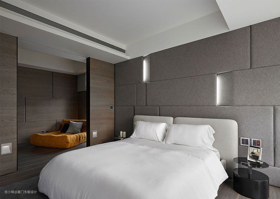 居家设计中,作为卧室的房间设计常著重收纳与机能规划,但床头背墙的设计,其实更能为房间带出简单的视觉重心与安定感。像是使用软绷布能赋予空间舒适温软的触感,透过光线与造型创造出立体感,兼顾了舒适的触觉与简洁有力的视觉表现。