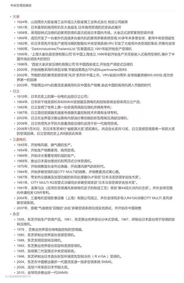 先一个客观事实,就氟系统中央空调,现阶段国产品牌相比海外品牌还有比较长的路要走,所以本期我们先扒日系品牌,来聊聊三菱电机、大金、日立、东芝这几个日系品牌究竟有何优势?