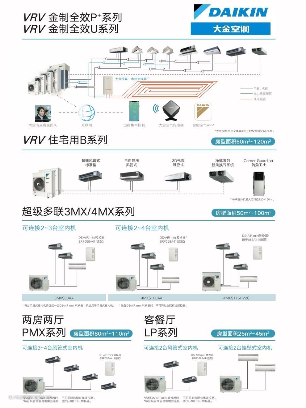 嘟嘟的建议是有钱就买大金高端系列VRV-P,带大金独有的温室平衡,性价比比较高,体感独特,不然普通系列还是贵的。