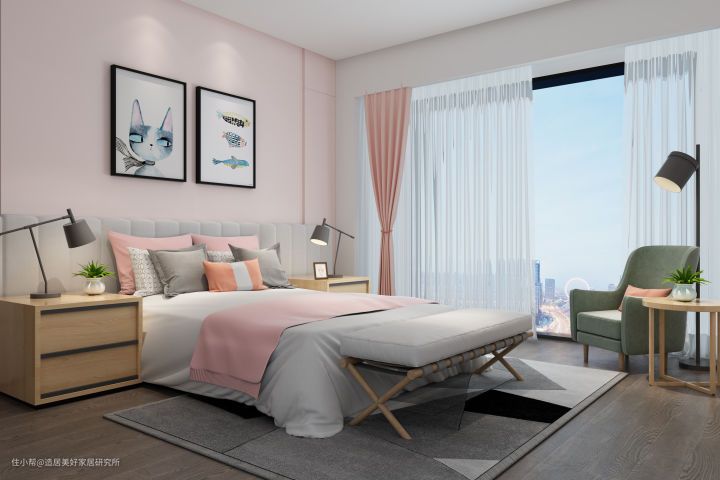 简单大方的白色(俗称留白),有利于提高空间的亮度,而且可以搭配原木色的床和床头柜,如果再加入点“藤编元素“,就更为文艺清爽;另外米黄色、驼色等颜色可以营造温馨舒适的氛围又不失档次。