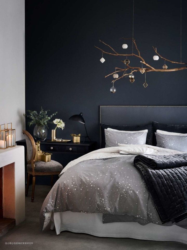 深色系不同于浅色系,有着和浅色系完全相反的视觉效果,深色显得深邃成熟、沉稳庄重,可以营造庄重而踏实的氛围,再搭配低调奢华的床品,显得极有品味,也非常的安静舒心,并且给人越深色越显气质的感受。