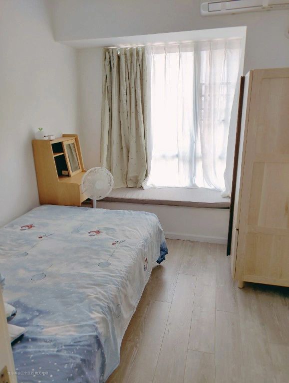次卧利用阳台上的空间,定制了一个非常实用的衣柜,可以给卧室增加一个不错的储物空间。就算放下窗帘,采光其实也挺好的。主卧不单独拍照,也很简单。