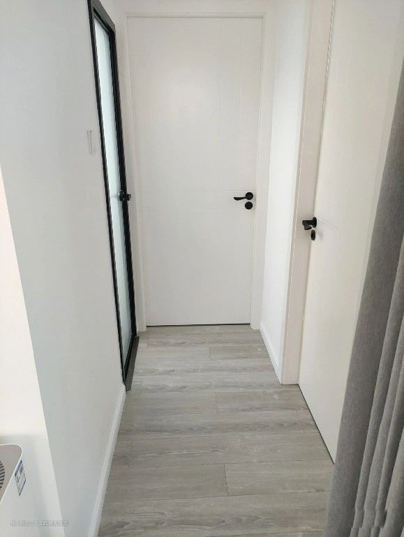 旁边有一个零食收纳盒和垃圾桶。吃零食的时候可以扔垃圾桶。太棒了。灰色的沙发很有质感,坐着也很舒服。过道简单,卧室的门都是白色的,非常干净简洁。空间小,没有其他装饰,没有影响。