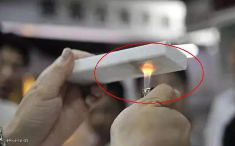4、烧。真的石英石台面不怕火烧,高温高压烧制而成,熔点能够达到千摄氏度,拿普通的打火机去烧不会变形,也没有烧焦发黑的现象。