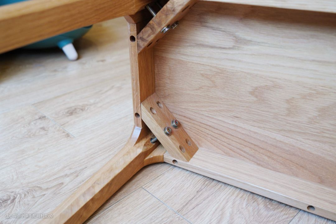 从桌面来看,这款茶几使用的是宽度不足10公分的小板拼接。尺寸不足60cm的宽度内,肉眼可见的木板就达到了10块,这让他的颜色时而深时而浅,很不统一。木纹也显得十分凌乱,一体性很差,完全没有实木家具天然的美感,这波低成本的用料顿时让我觉得自己很亏。
