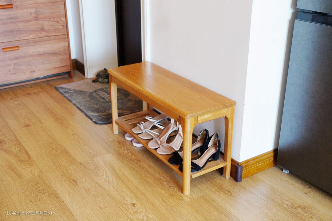 维莎原木这款白橡木日式换鞋凳应该是我家最小的一件实木家具,开放式的双层设计,当鞋子摆满之后,会显得门口特别凌乱,一点也没有宣传图片上那么清新美观。