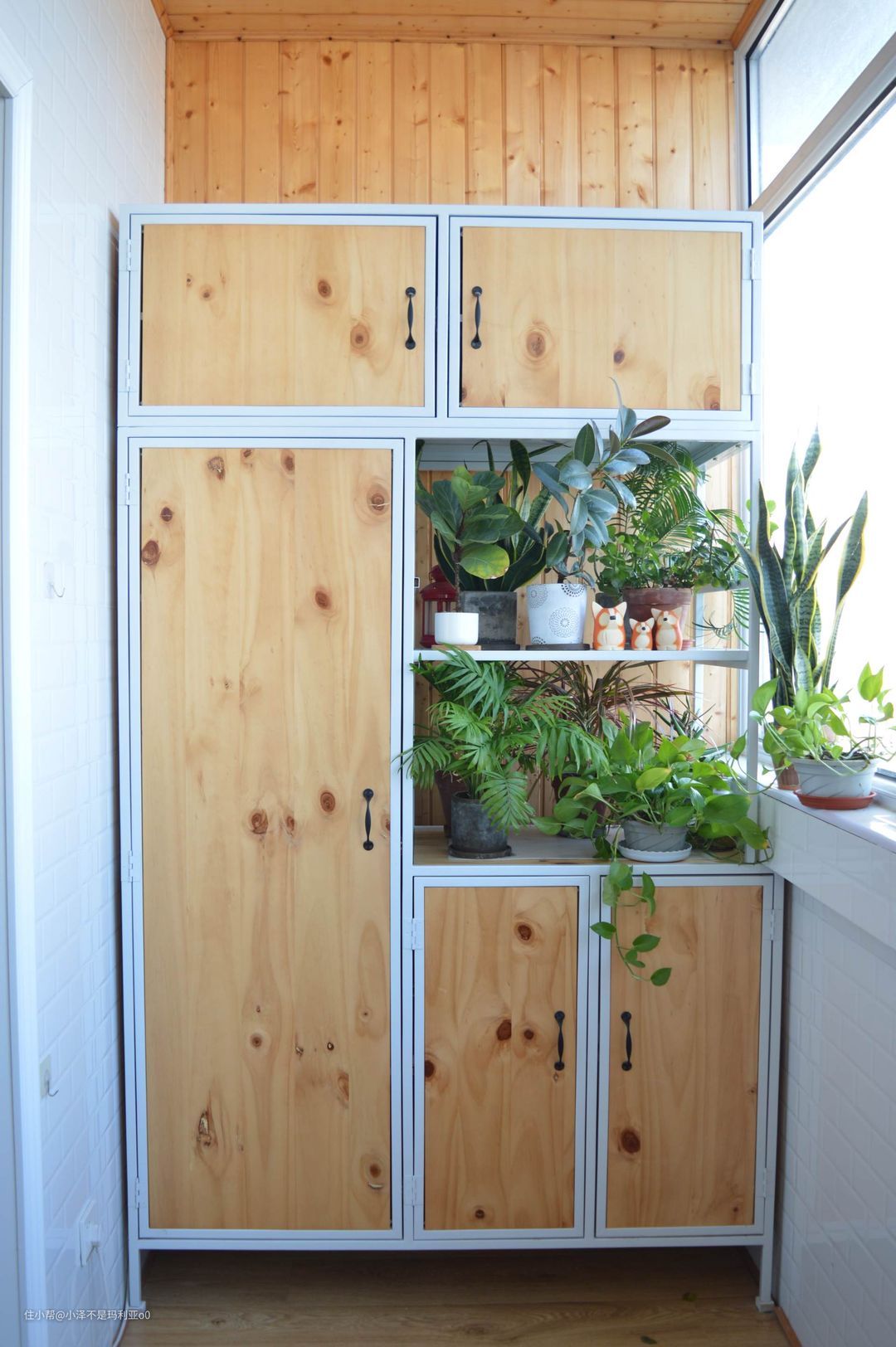 阳台由于经常要风吹日晒,环境相对会比较恶劣,所以我并不打算购买太贵的实木家具。这个收纳柜是在天猫的一家家具店定做的,柜门和侧板是松木材质,框架和背板是铁质。