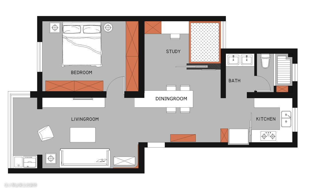 餐厅和书房是一个前后开合的关系。别着急,往下看。