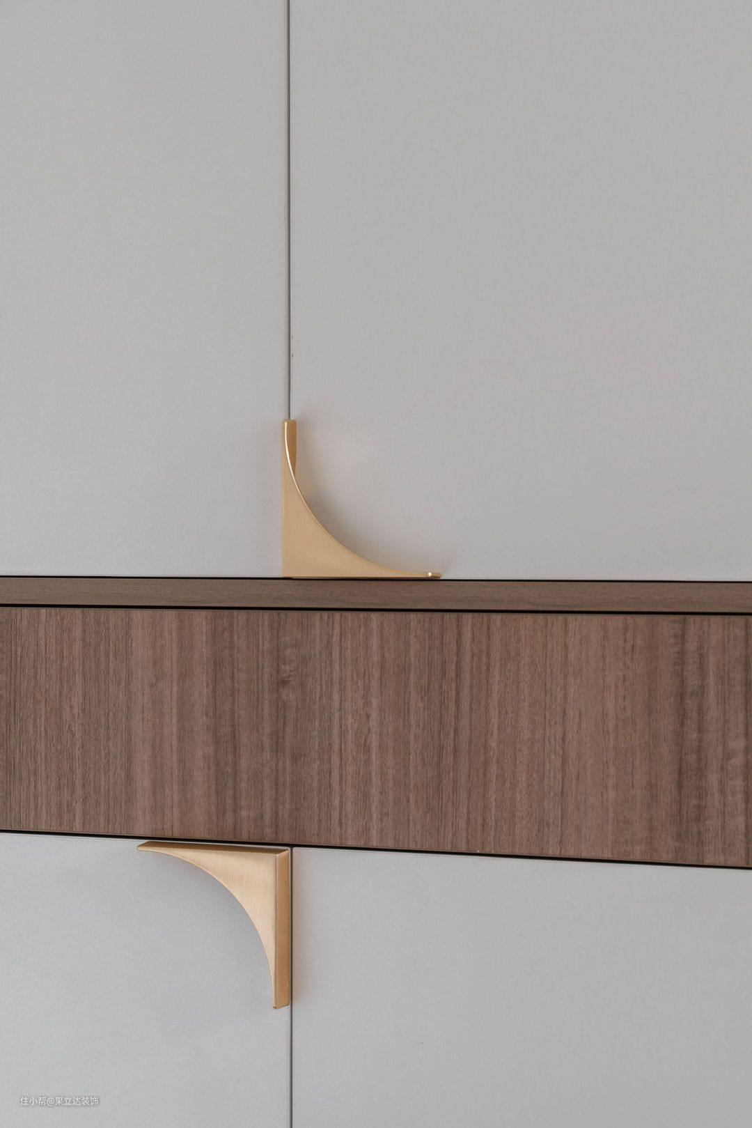 可能是因为做了太多的简约门板都是没有把手的设计,所以在看到比较特别的门把手的时候就会觉得特别有意思。这对柜门把手在淘宝的收藏夹里躺了可能快1年多的时间了,这次因为作品带些混搭的效果,所以就用上了。