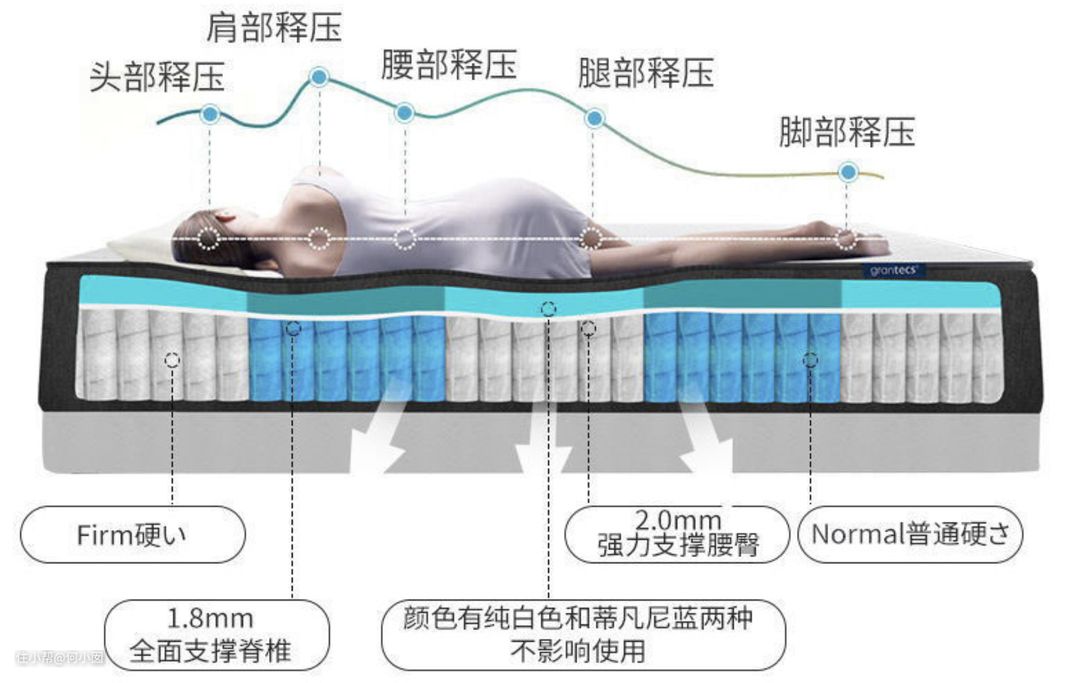 再往下就是独立无纺布袋包装的五区弹簧了,床垫我是自用的,就不再拆解了,放一张官网图