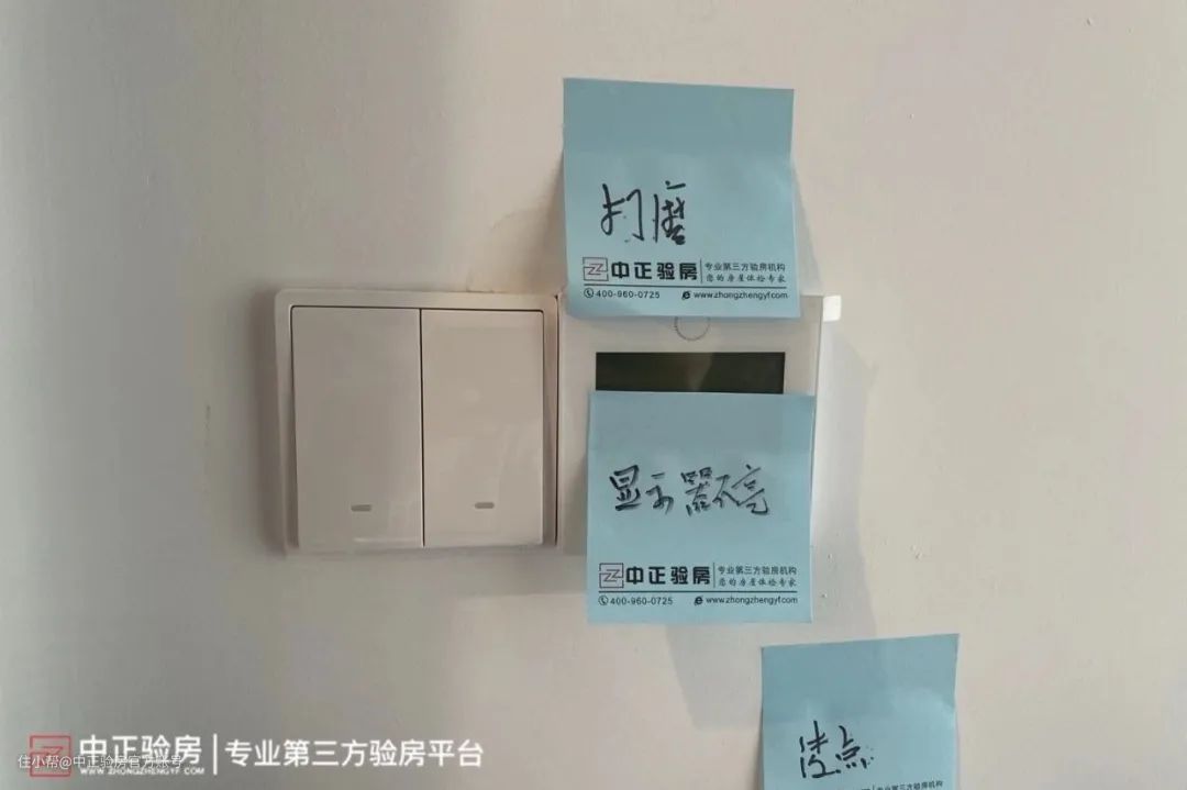 ▶ 整改建议:验房主要从感官性、功能性、安全性三大方面进行查验,乳胶漆墙面细节问题统统属于感官性问题,对美观性上会有稍微的影响,建议根据现场情况进行打磨修补处理即可