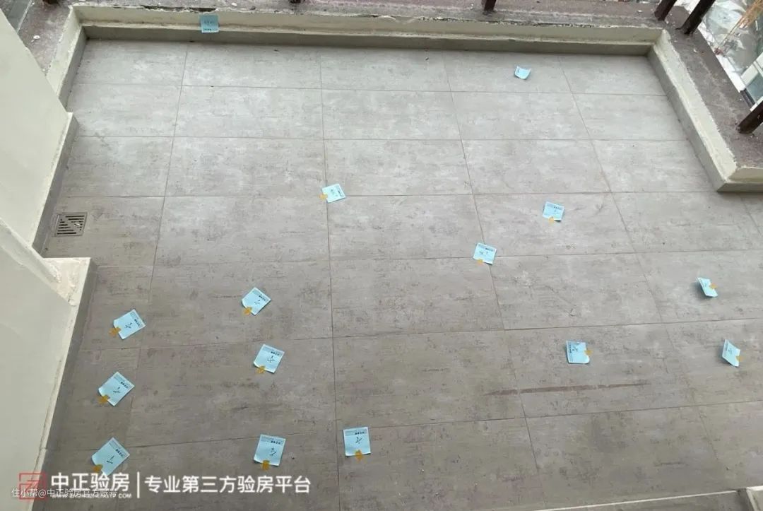 ▶ 整改建议:地面大面积瓷砖空鼓,首先会降低地面的牢固性,遇到重击时,地面非常容易破损;其二是地面有水时,水很容易从勾缝处渗入空鼓里堆积,引发异味或者往下继续渗透。