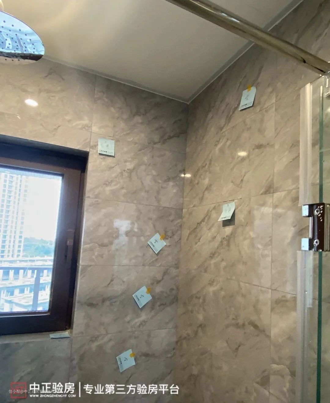 ▶ 整改建议:前期施工时由于坡度未找好,造成了现在的积水情况,按规范来讲是不允许出现这种情况,整改方式只能是拆掉部分瓷砖,找好坡度重新铺贴
