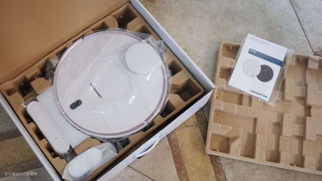 先从包装开始,蓝宝扫地机器人的外箱是用了两层包装箱,相当的厚实,保护得也很用心。外侧是牛皮纸箱中英文的印刷,可以看到产品的一个简易图。里面是一个彩盒包装,印刷质量很不错,可以看到这款扫地机器人是有黑白两色可选,我拿到这款是白色的。