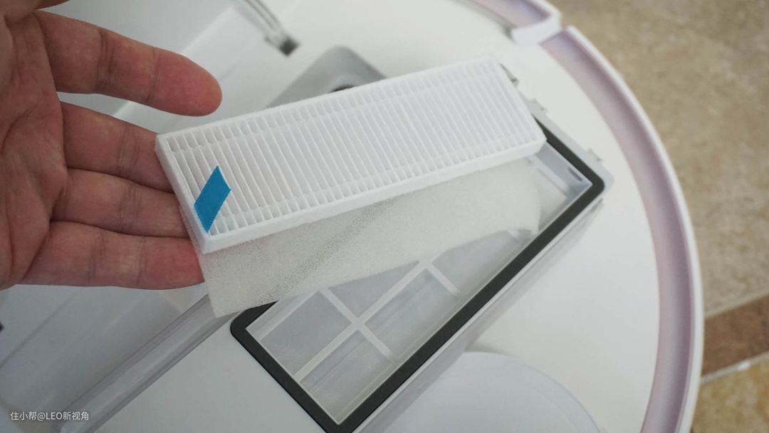 另外,蓝宝扫地机器人的滤网分为三层,第一层粗滤,是和安装架连在一起的,然后是一块海绵,最后是一块滤芯。先不说过滤效果如何,这个设计大大降低了滤芯的使用成本,后期直接更换滤芯就可以了。
