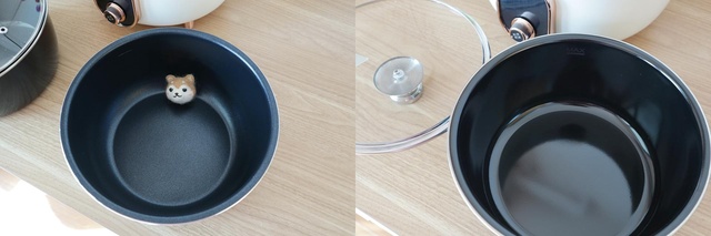 两个内胆的好处自然不用多说,用的时候针对性更强表现也会越好,而且也可以完美避免串味儿和不好清洗的问题。APIXINTL电压力锅的两个内胆根据不同的使用场景有材质和设计上的区分,五层铝合金内胆配磨砂黑晶涂层能够保证导热效率和耐用性,用来焖饭再好不过,口感酥软香甜;而亮面的陶晶内胆则是炖肉的好帮手,洗起来也特别简单。