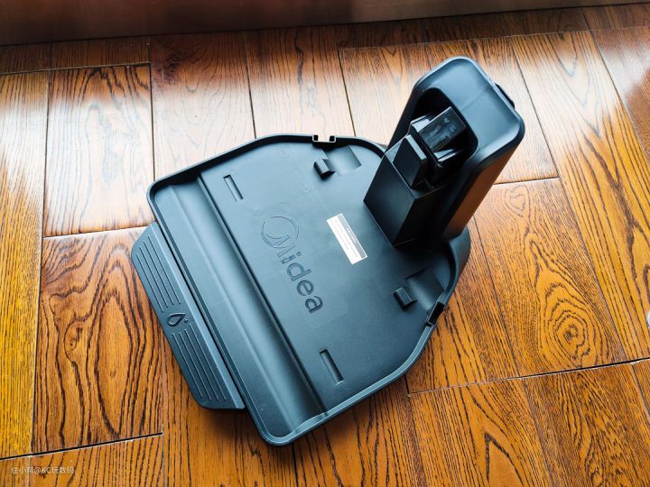 为了方便运输,美的智能除菌 X8 洗地机采用了上下分离的设计,下半部分包括洗地机的主体(包含地刷、污水桶、净水桶等部件)。