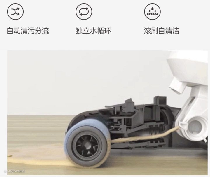 虽然吸尘+拖地同时完成想法看似简单,但是想要完美实现这样的功能,细节方面还是需要工程师们灵巧而又严谨的设计。一把吸尘器吸全屋并不太困难,只要电量/续航足够即可,而拖地机要解决一个非常直接的问题——滚刷脏了怎么办?