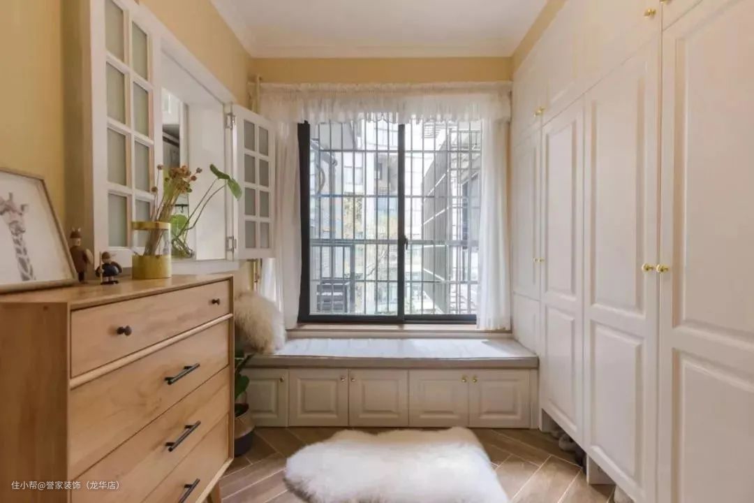 通常飘窗下都不是实体的,可以在这个区域安装柜子或是抽屉,堆放一些杂物非常适合。