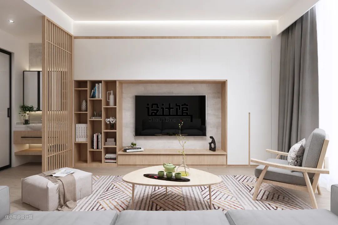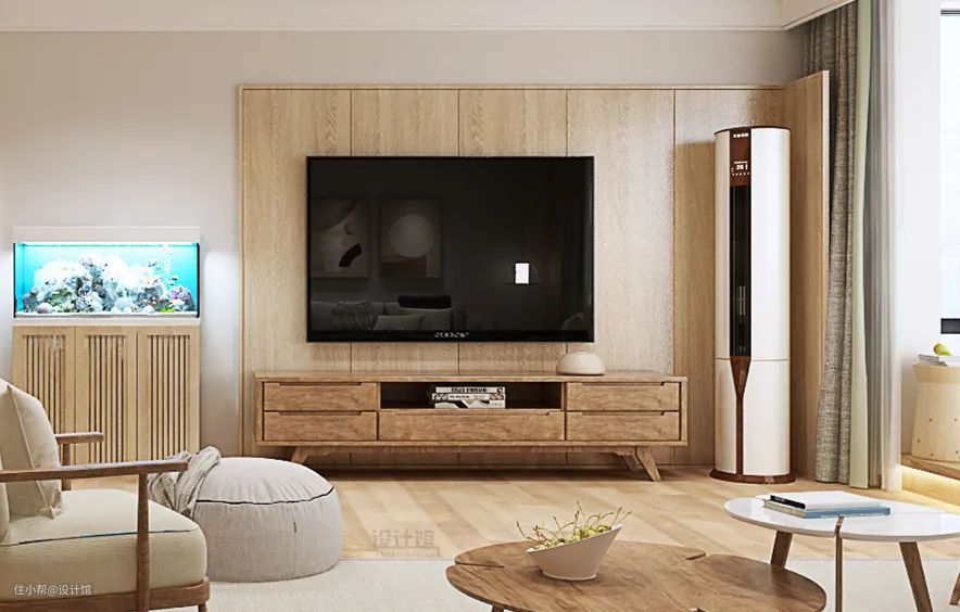 通常来说,成品电视柜的高度是在40-60cm之间,而一些定制款式的电视柜,尺寸就可以根据实际需求来做。此外,电视柜的高度,还要考虑电视机的摆放方式、插座的位置预留,避免选的电视柜高度与整体设计冲突。