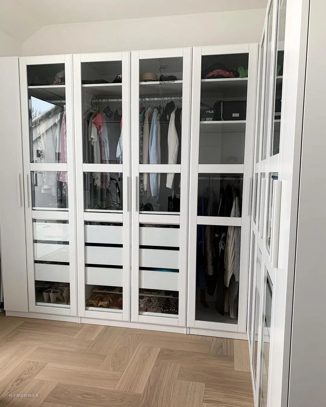这是公寓的第三个房间,也是唯一没有倾斜屋顶的房间,进门的左侧是办公室部分,另一侧则是靠墙的两面大衣柜,兼具书房和衣橱的功能。